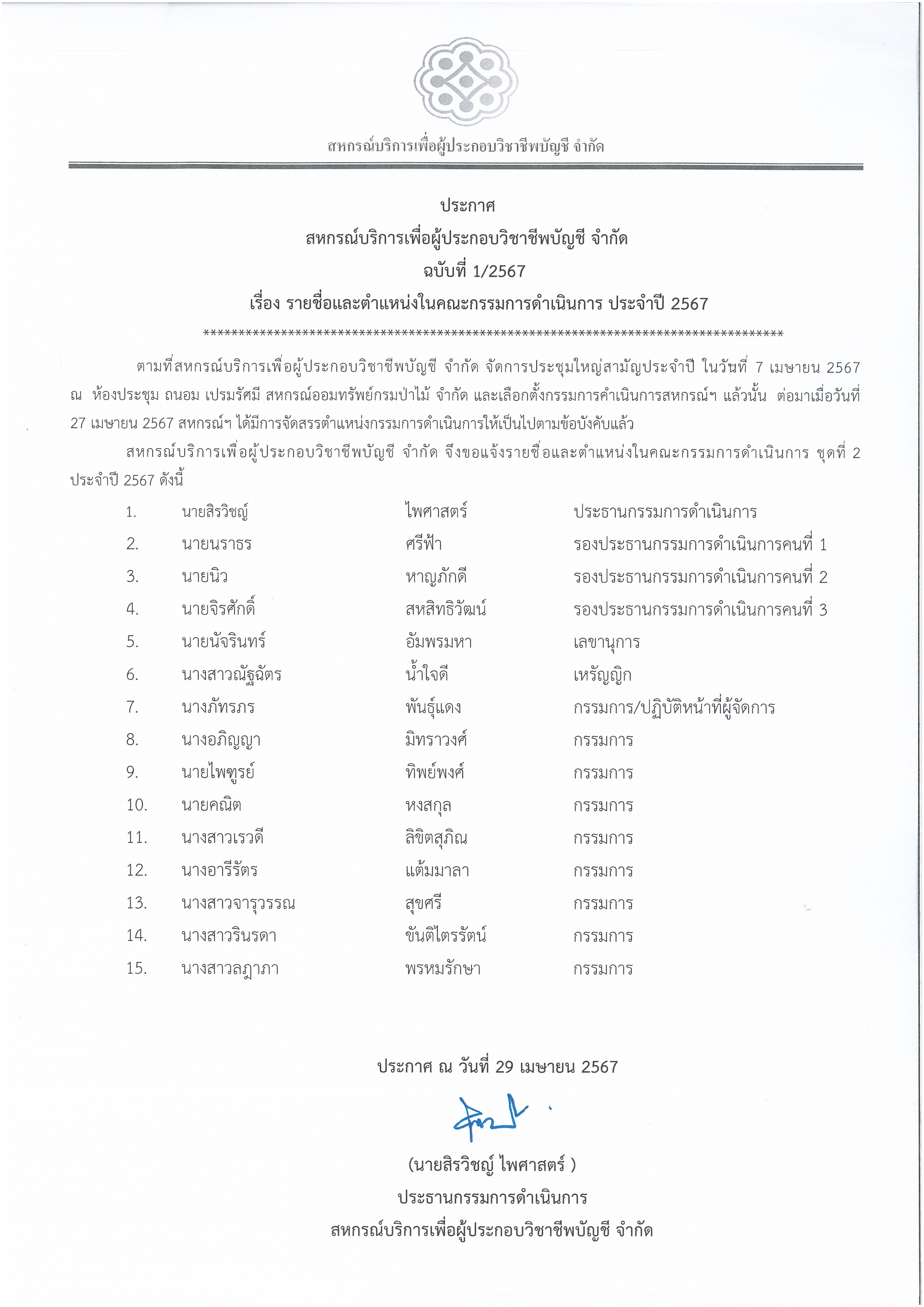 ประชุมใหญ่ประจำปี 2567 เมื่อวันที่ 5 เมษายน 2568